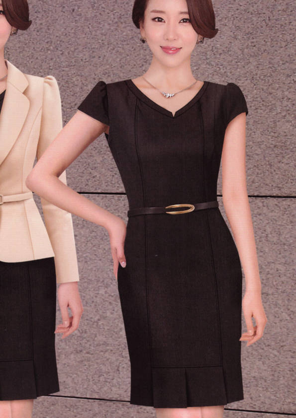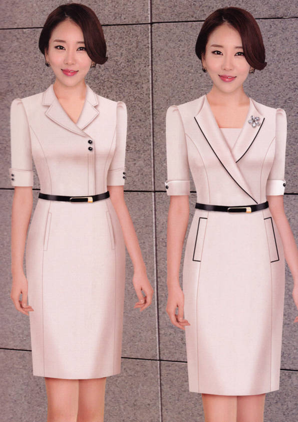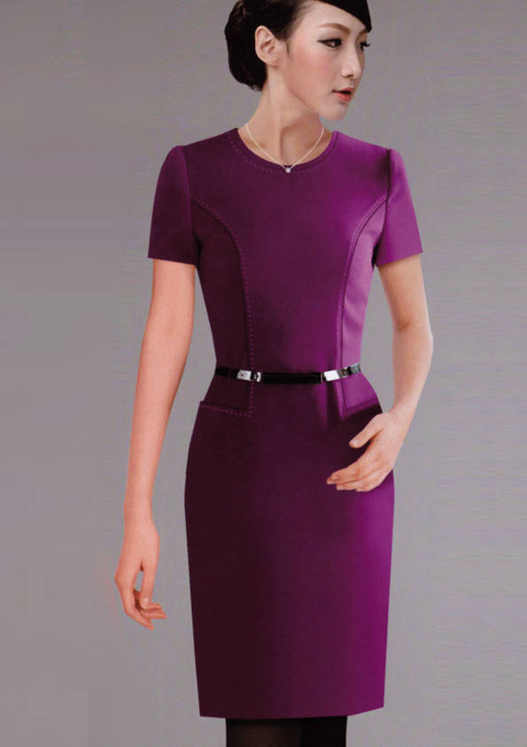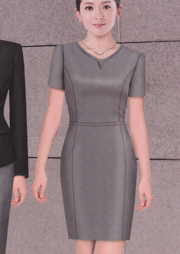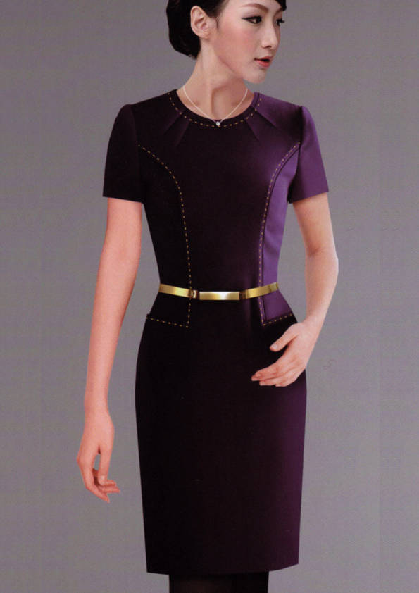 連衣裙,是指吊帶背心和裙子連在一起的服裝,是裙子中的一類。連衣裙在各種款式造型中被譽為“時尚皇后”,是變化莫測、種類最多、最受青睞的款式。一支口紅、一雙高跟鞋、一條連衣裙,女孩變成了女人。正如美國設計師DianeVon所說:要感覺像個女人,請穿連衣裙。1977年,年僅26歲的Diane設計出一條不用拉鏈的針織連衣裙WrapDress,一炮而紅,連衣裙也從此得到前所未有的關注,甚至成為1970年代的一種標志、一種文化現象,并成為國際時尚界無法復制的經典。我們這里提供定制的連衣裙是屬于時尚職業裝一類的連衣裙。